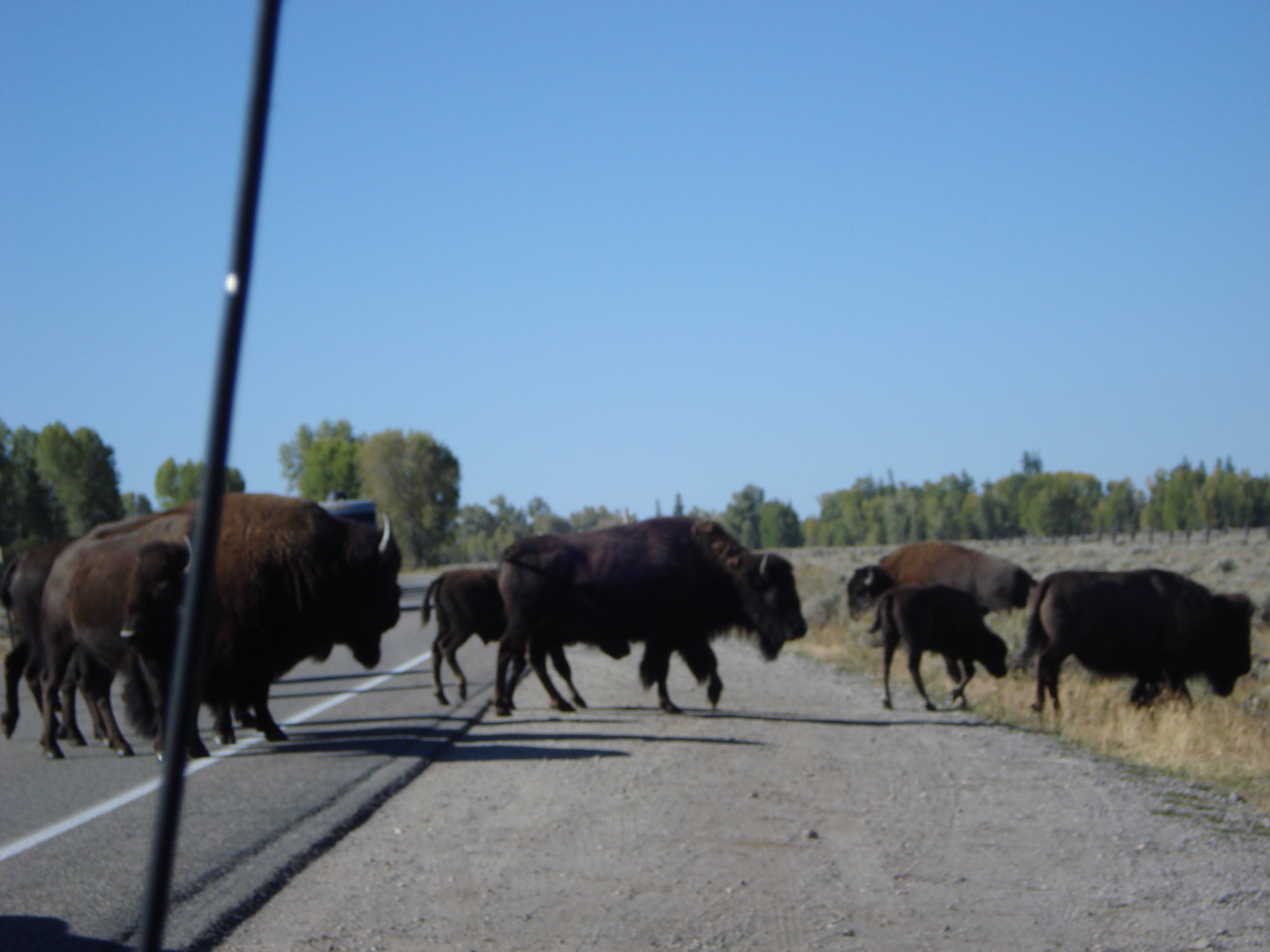 Buffalo’s_crossing_the_road Published 6 November, 2009 at 3072 × 2304 in Summer in Cowboy Country Rush-hour in Wyoming