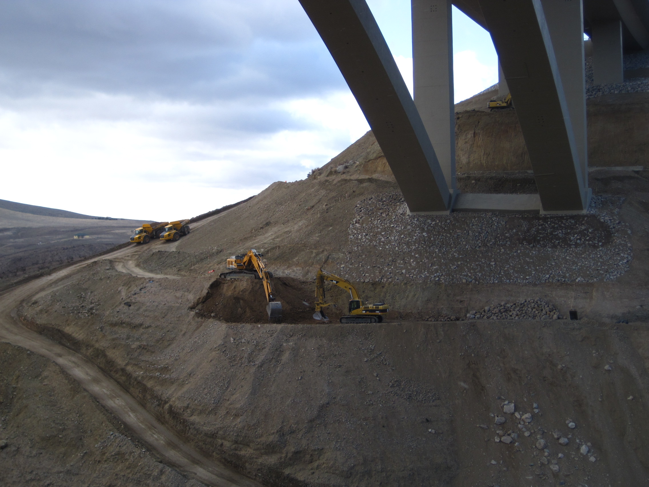 Bridge restoration Published 26 April, 2012 at 2272 × 1704 in The Unusual in Nevada Excavators re-contour the land below a new large highway bridge.